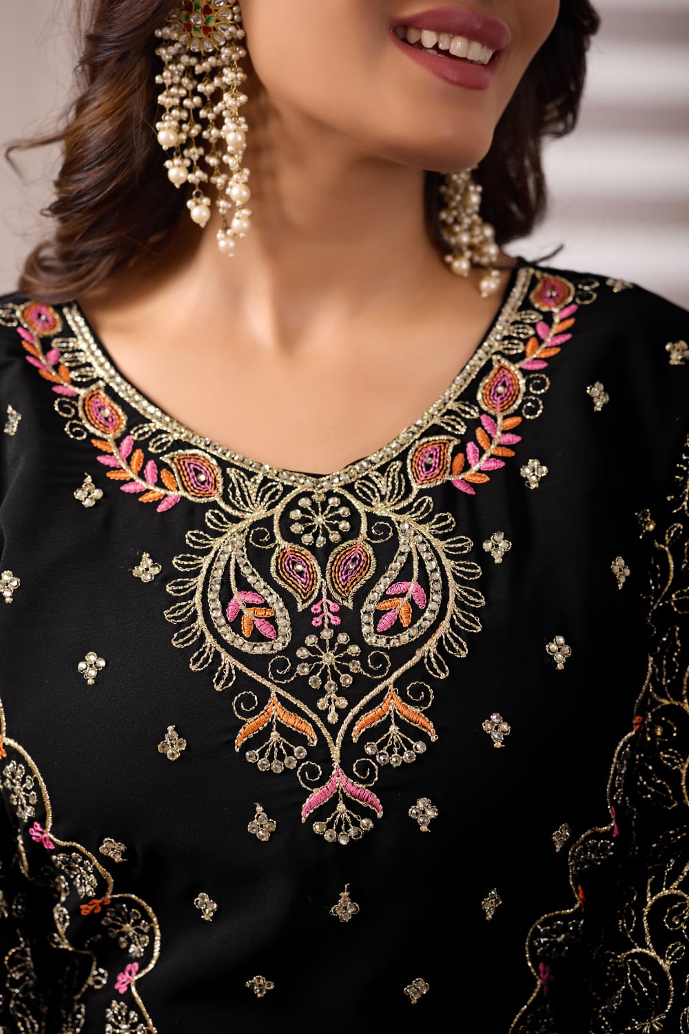Style this suit with matching earrings and light heels — perfect for parties, family functions and festive occasions.